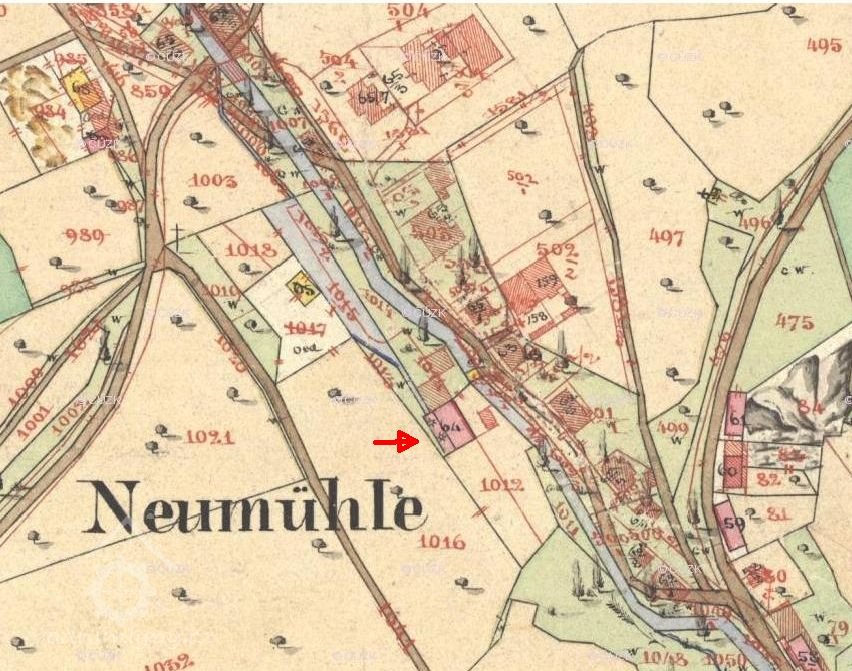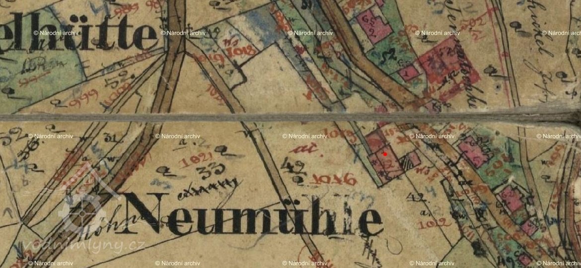 Na císařských povinných otiscích a indikační skice je lokalita, ve které mlýn stál, nazvána Neumühle - Nový mlýn.