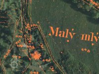 Menší mlýn (ale jen s o 0,7 HP nižším výkonem!) 300 m pod Panským mlýnem. Vzhledem k špatné čitelnosti leteckých snímků z let 1938 a 1953 nelze prozatím odhadnout dobu zániku a rovněž dle sdělení majitele chatky na parcele mlýna nebyly dosud nalezeny žádné jeho fotografie. Zachován jen částečně zatopený zbytek lednice a jeden mlecí kámen.