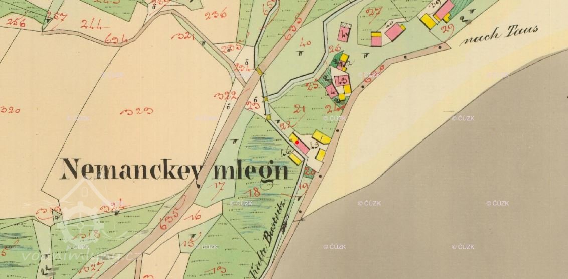 „Pozimek roku 1864 byl velmi suchý a beze sněhu, takže bylo strach o vodu a mnohá místa musela již zdaleka vodu sobě voziti. Nedůstatek vody, jakýž mlynáře i lid již po tři léta trápil, přiměl konečně roku 1864 mlynáře Jakuba Ludvíka v Havlovicích číslo 22, Že sobě při svém mlejně nemanském vystavěl vysoký parní komín a zařídil si nový parní mlýn, takže nyní na vodním i parním mlýně lidem mele. Mlíti se započalo o třetí týden adventní, v polovině měsíce prosince.“