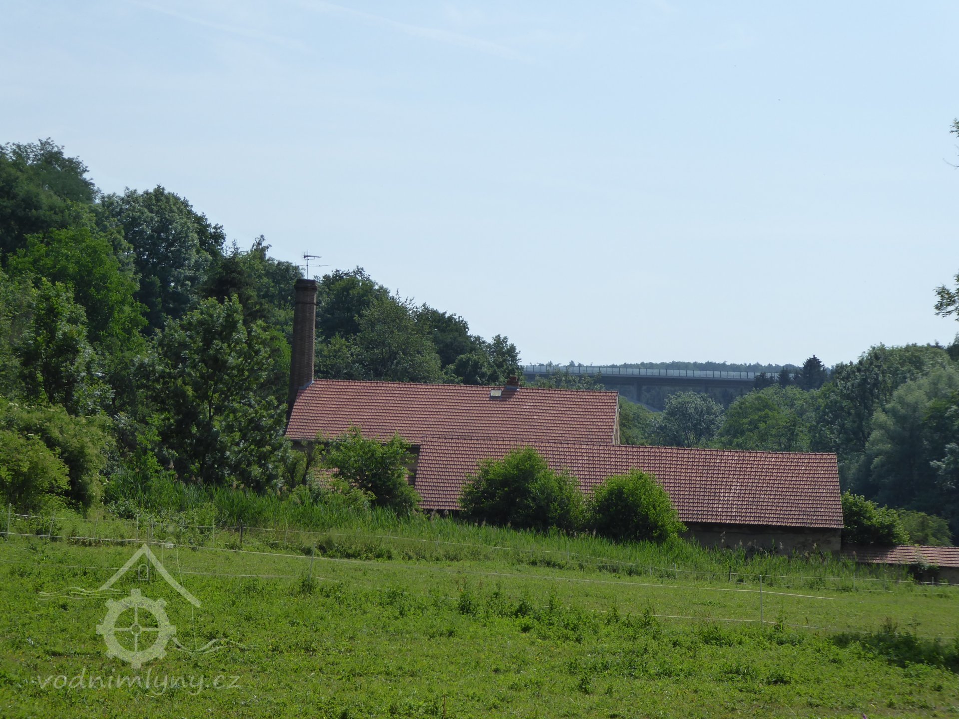Nad mlýnem je z cesty patrný cca 200 m dlouhý náhon, který vedl dozadu ke mlýnu,