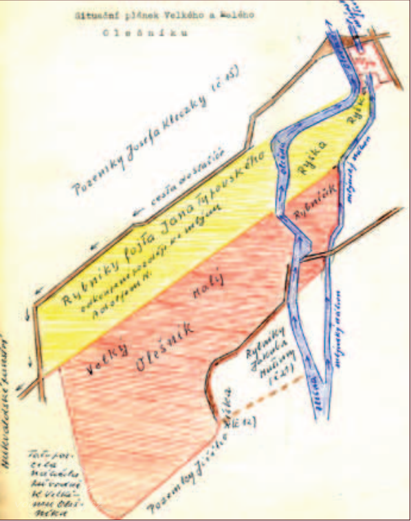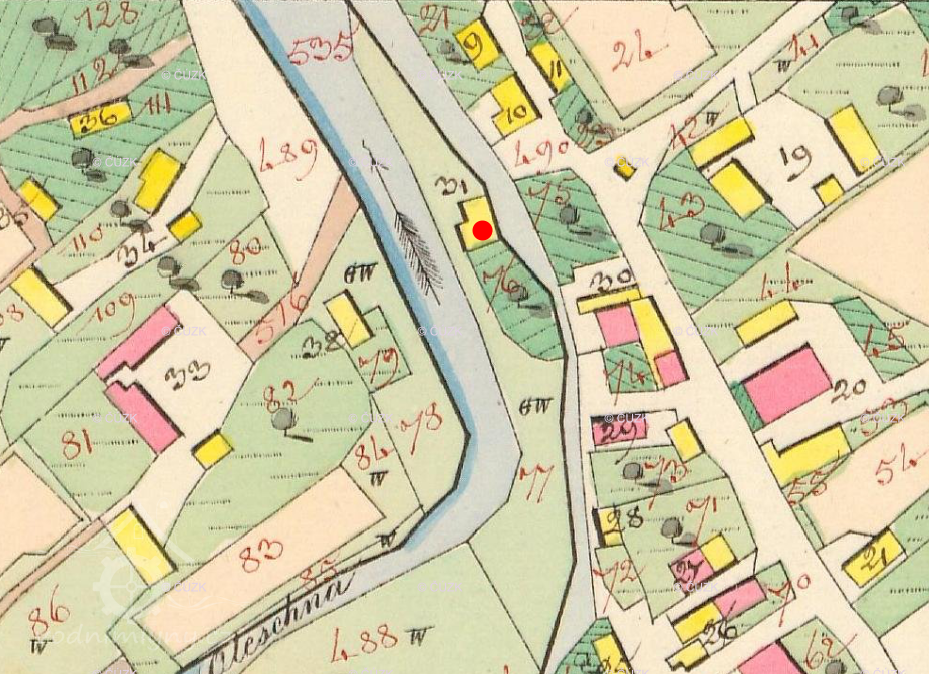 Zvláště přednostněvšechny výdaje spojené s nabytím a zapravením knihovních pasiv po uskutečněném převzetí má být poskytován jeho matce a vdově Terezii po celou dobu jejího života následující výměnek. Jako byt jedna světnice, 8 metrických centů žita, 4 metrické centy pšenice a jeden metrický cent ječmene, dále 2 krávy držeti jeho vlastním krmivem, 1 kus vepřového ročně k 1. srpnu dát a vykrmit, a brambory ze svého sklepa a zelí ze svého sudu a dříví ze svých zásob je povinen poskytovat. Mimo to podle závěti svého otce je povinen ponechati používání rybníčku, zřízeného na Hrubém Olešníku tzv. Nový rybníček svému bratru Karlu Neussarovi až do jeho smrti a po jeho smrti má tento rybníček připadnout znovu ke mlýnu. Jelikož matka jeho a vdova odpírá dočasně ze svého zaplatiti připadající výlohy, jakož i stanovené překupní laudemium ve spojenou částku 141 fr 43 Kr ze svého, tak na její všemožné naléhání má být při uskutečněném převzetí v hotovosti vrácena. Na konec ze strany poručnické se povoluje zaknihování této listiny. Následovné úřední vyhotovení této listiny a vytlačení úředního razítka.