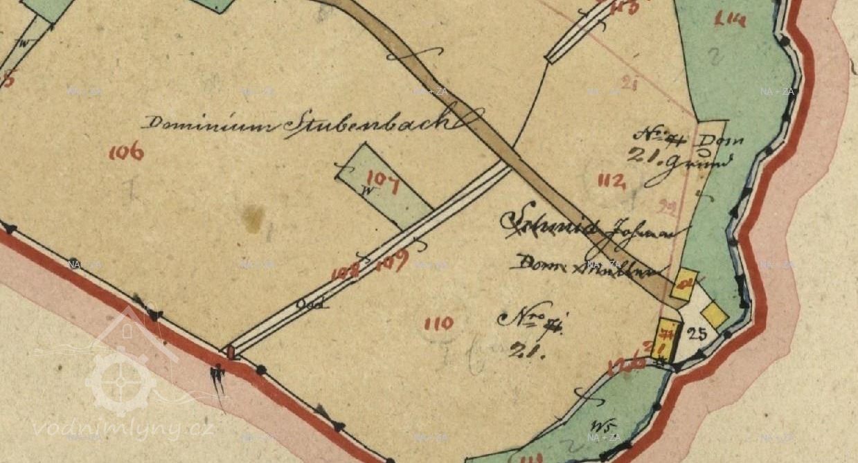Majitelem mlýna v roce 1930 byl Jan Bauer, při mlýnu se uvádí cirkulárka. ( V seznamu vodních děl je poloha mlýna čp. 21 nepochybně zaměněna s usedlostí čp. 148 v katastru Dolní Zelené Hory, jestli jsou technické údaje přiřazeny správně není jisté ) Dolní tok Plavebního potoka se nazývá Sekerský.