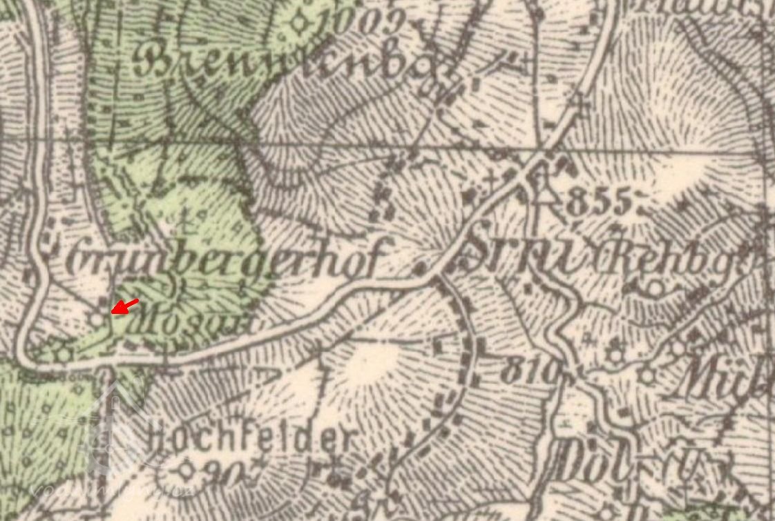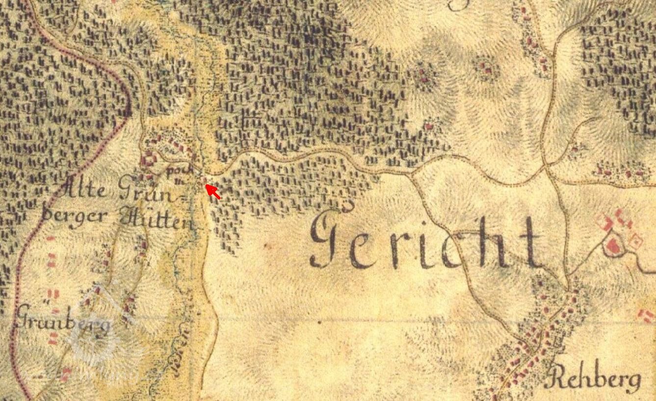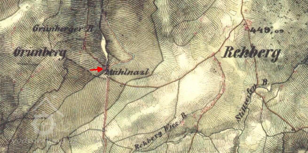 Původně mlýn na křemen, sloužící pro potřeby blízké huti, původně spadající do katastru Prášil.