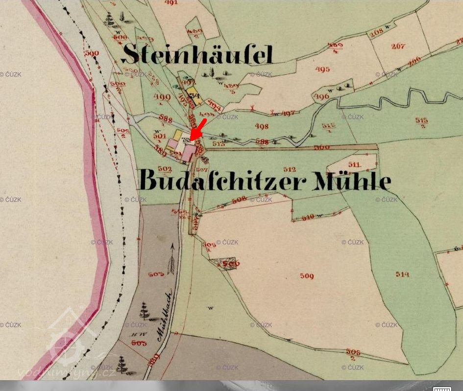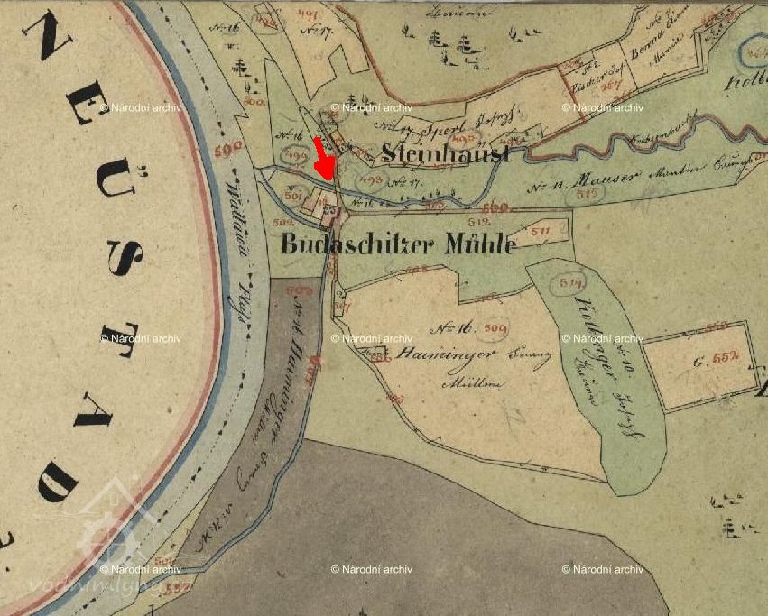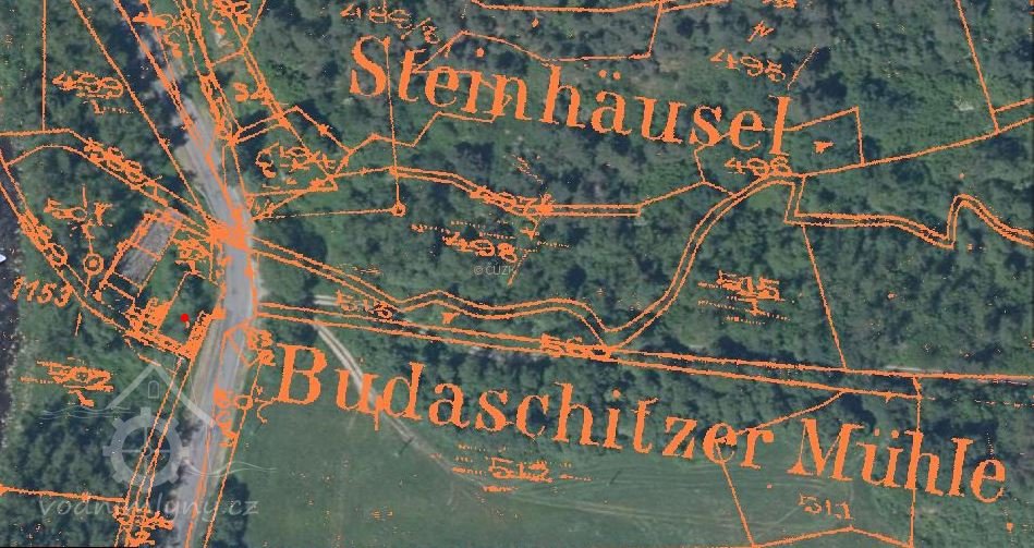 Tento mlýn je zobrazen na mapě Stabilního katastru-