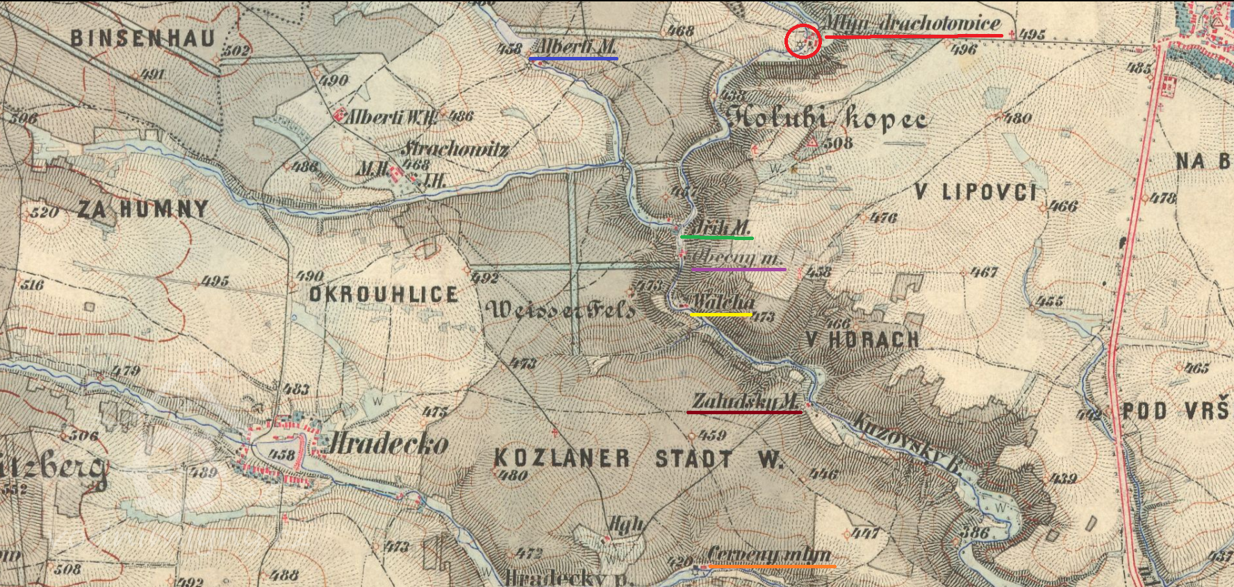 2 km východně od dvora ve Strachovicích