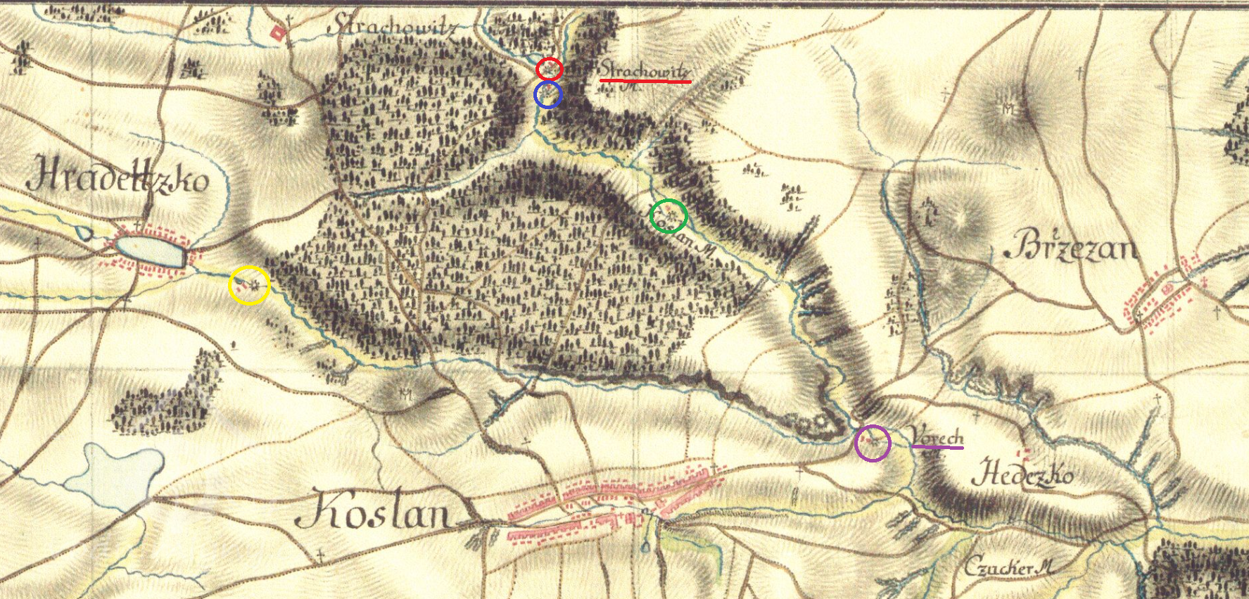 3 km severně od kostela sv. Vavřince v Kožlanech