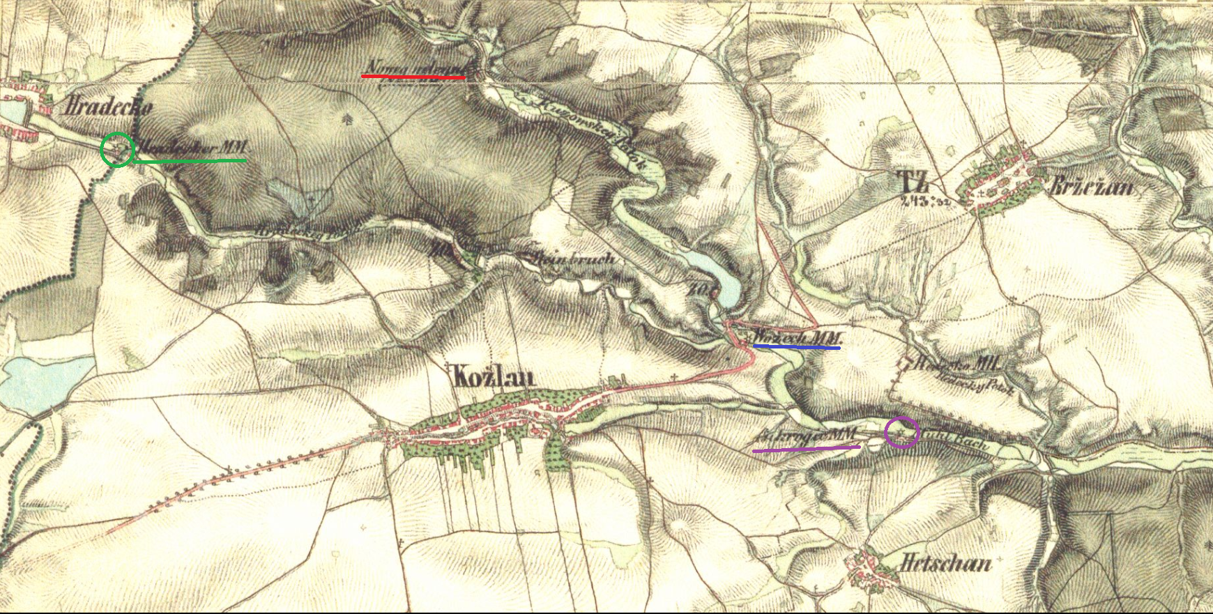 1701 majitel Kožlan Jan Týřovský povolil Kožlanským postavit na tomto místě mlýn, stavba se protáhla na 12 let