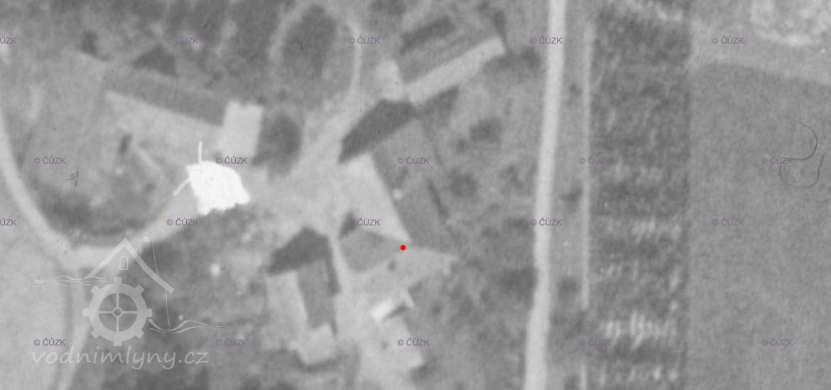 Zbořený mlýn, na jehož základech byl vystavěn v 70. letech nový objekt.