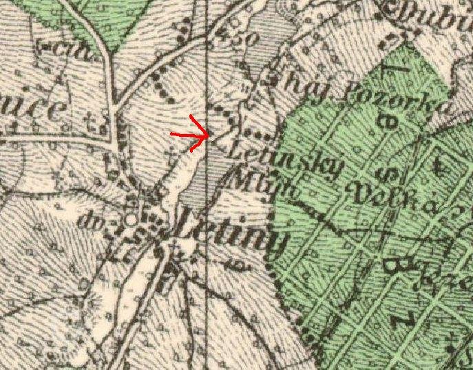 Uvnitř mlýnského stavení bývala pěkná mlýnice s podlahou z dubových fošen. Z ní se scházelo dolů po kamenných schodech, kde pod mlýnicí tekl Letinský potok.