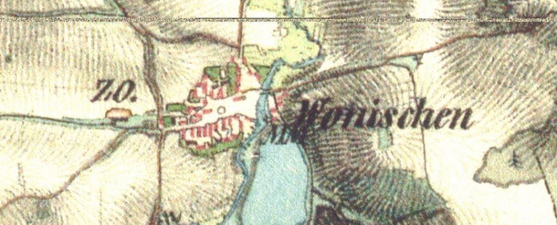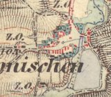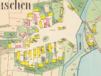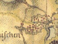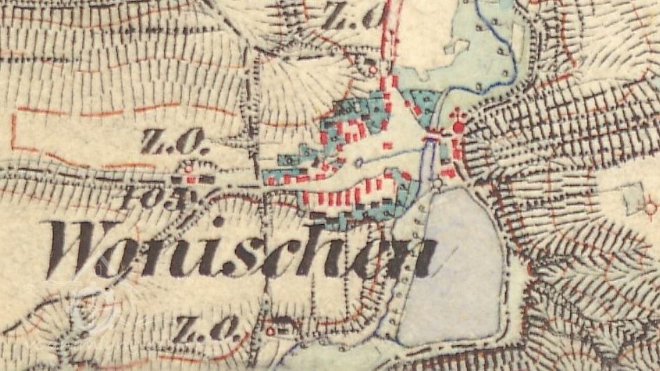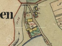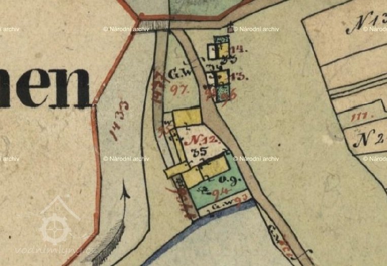 Na I. Vojenském mapování mlýn není vidět, ale mapa zde není dobře čitelná. Na II. a III. Vojenském mapování mlýn zanesen je zřetelně. Na indikační skice jsou zakreslena 2 kola a 5 nespalných budov v uspořádání uzavřeného dvora, mlýnice je oddělena od obytné budovy i výškově. Jako majitel je u č. 12 uváděn Johann Portner.