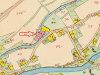 Velký mlýn s pilou, zaniklý po odsunu Němců, zachovány pouze opěrné zdi ve svahu a betonová turbínová kašna.