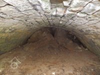 Zaniklý menší mlýn pod rybníčkem uprostřed chmelnic. Dnes z něho zůstala jen část klenby zavaleného sklepa.