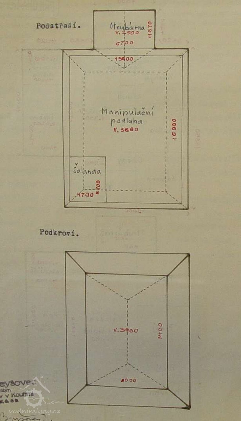 Patrový barokní mlýn stojí na náhonu říčky Výrovky. Objevuje se již na Willenbergově vedutě města Kouřimi z doby kolem roku 1600, patřil později mlynáři Bukačovi (†1689). Rokem 1898 se datuje modernizace mlýna, kterou nechala provést rodina Miškových. Severní přístavbu doplnila strojovna parního stroje s kotelnou a osmibokým cihlovým komínem, byly pořízeny válcové mlecí stolice značky Wegmann a Ganz. Od začátku 20. století mlýn vlastnila rodina Augustina Beyšovce, roku 1918 nechala přistavět turbínový domek se strojovnou a instalovat místo vodního kola dvě turbíny. Mlelo se až do roku 1962, v současnosti je památkově chráněný objekt postupně adaptován k trvalému bydlení.