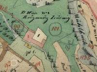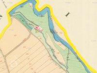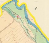 Mlýnice kolmo na obytnou část, patrné zbytky náhonu od rybníka "Na střelnici".