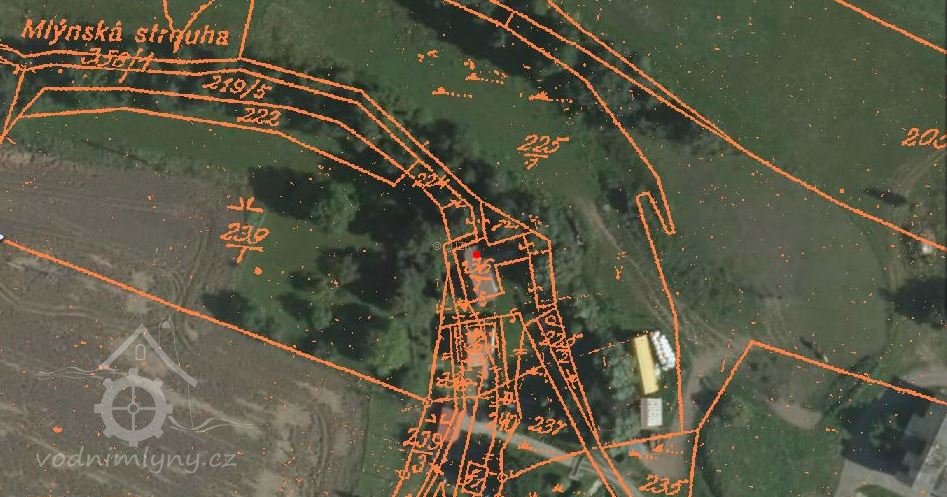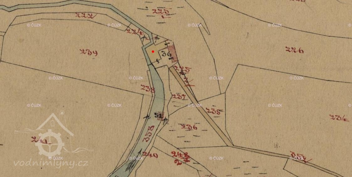 Mlýn je zakreslen na císařských povinných otiscích, indikační skice. Na II. vojenském mapování je uveden jako MM, moučný mlýn.