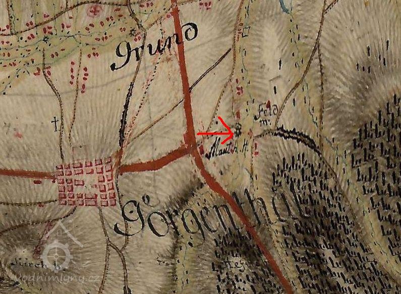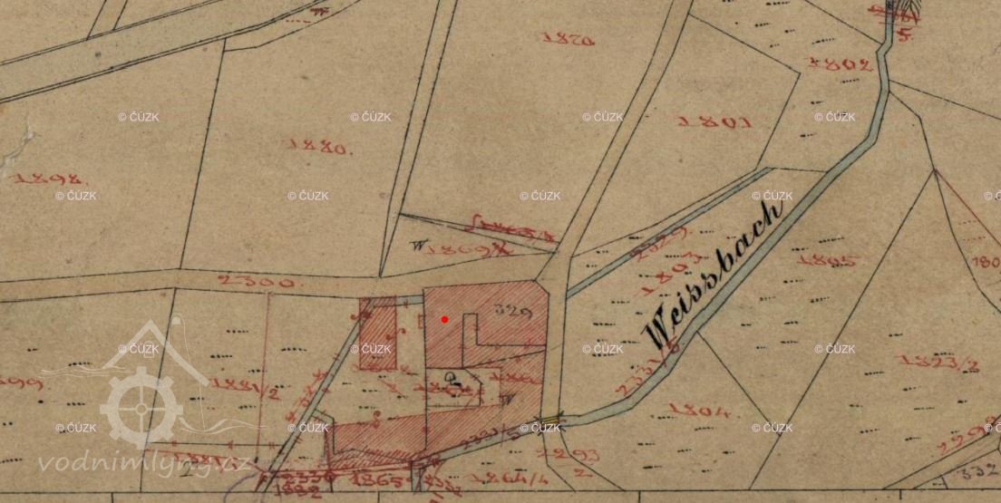 Roku 1850 se mlýn v rámci arondace katastru / vyrovnání vlastnického práva k pozemkům se sousedními obcemi/ dostal na katastr Dolního Podluží jako čp. 235. Mlel však hlavně pro jiřetínské pekaře.