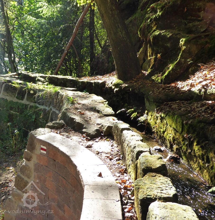 Tok Suché Bělé byl přeložen z údolí od silnice výše, voda teče umělým korytem a spadá umělým vodopádem v sousedství bývalého mlýna ke svému původnímu toku, kde je zatrubněna.