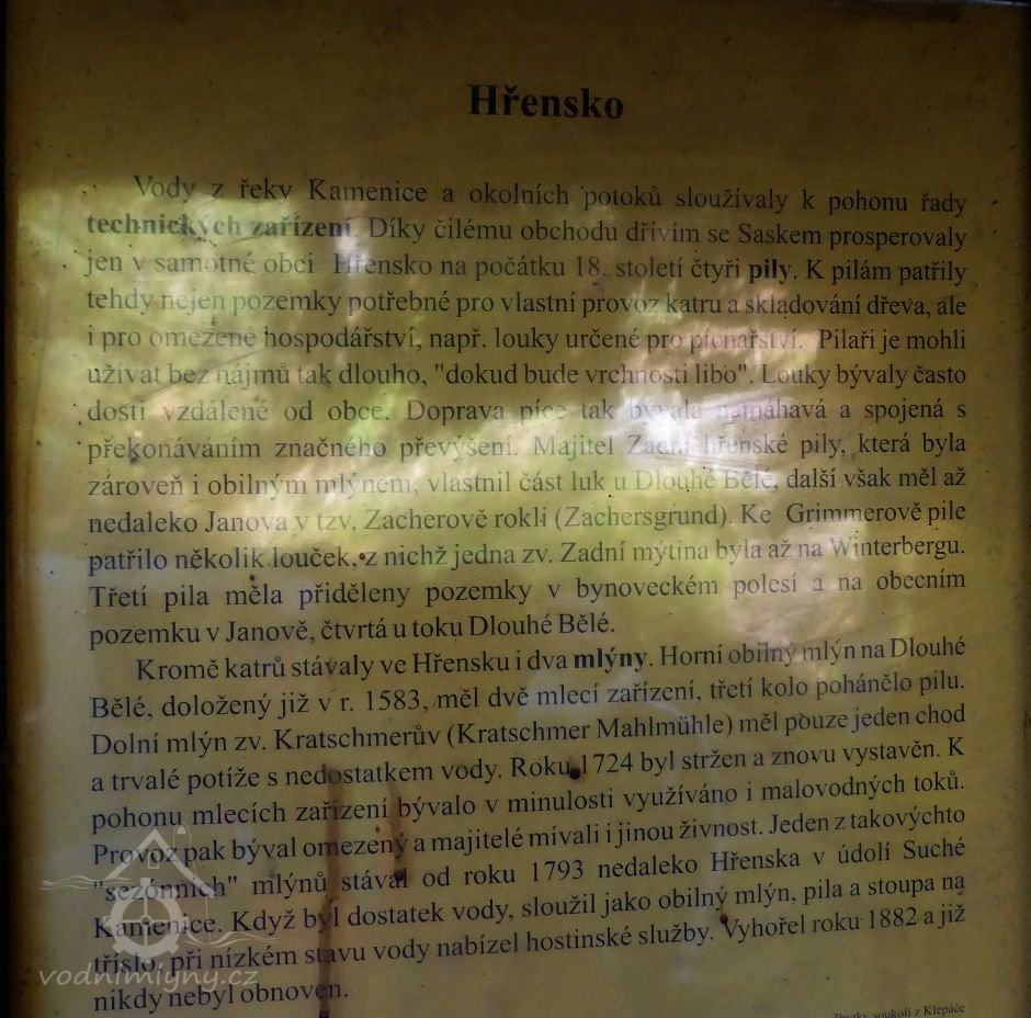 Další upřesněníHistorie, zmínka o 3 mlýnch ve Hřensku