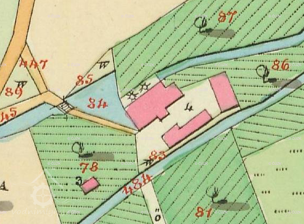 1930: 1 kolo na svrchní vodu, hltnost 0,042 m3/s, spád 6,4 m, výkon 2,5 HP