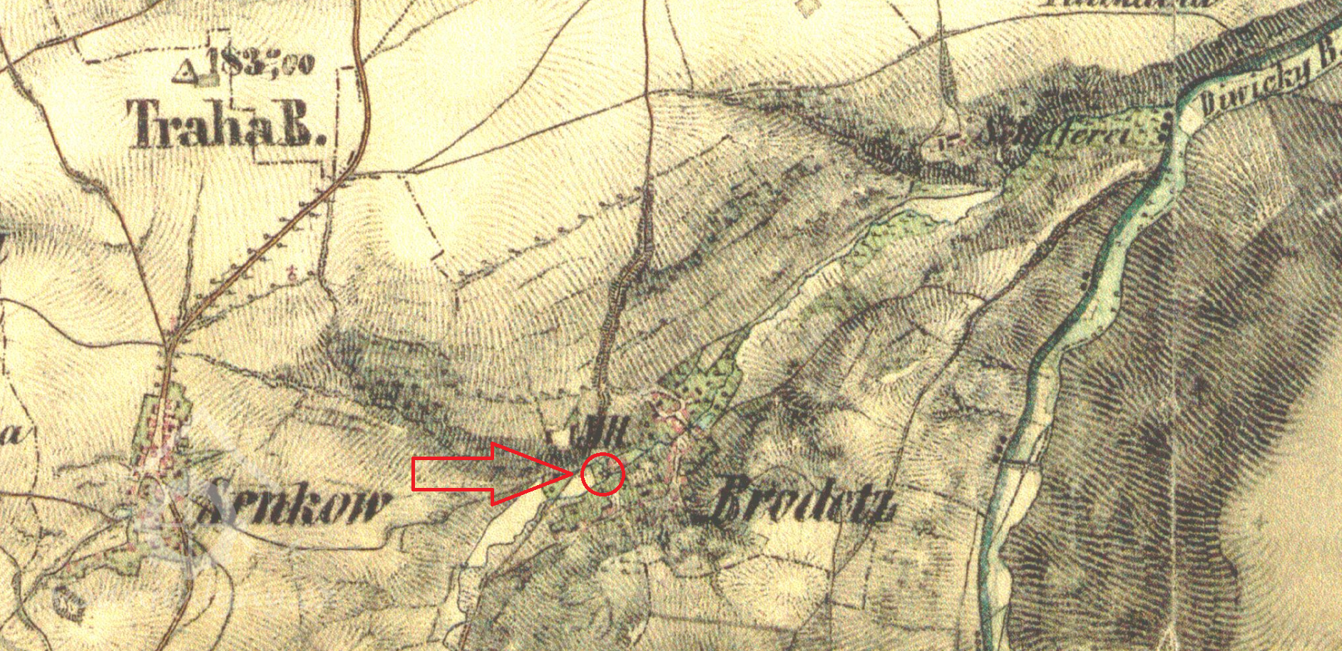 150 m jv od zámku v Brodci
