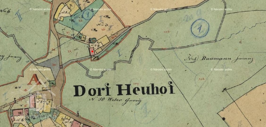 1949 budovy stojí. V říjnu 1955 zbořeno z důvodu hraničního pásma.