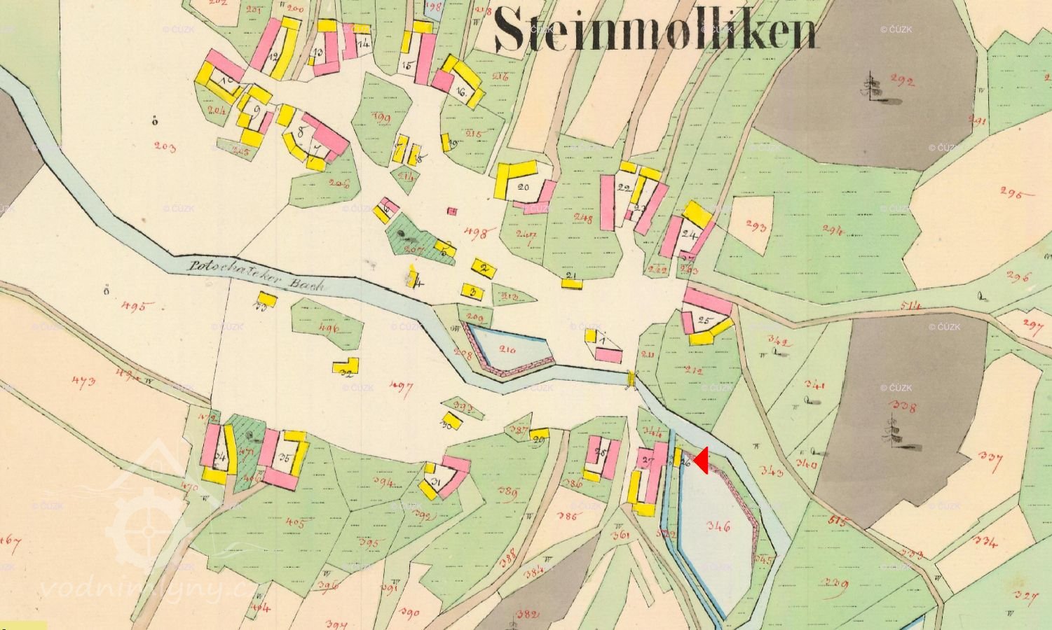 Mlýn s pilou uveden v Seznamu vodních děl Republiky československé z roku 1930, majitel František Souček