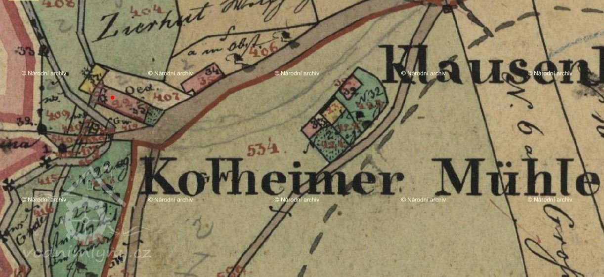 K mlýnu původně ještě patřila pila/st.p.37- zbořena v roce 1908.Nemovitost je zobrazena na mapě Stabilního katastru :Čechy-6929-1- k.ú.Skelná Huť,mapový list č.003.