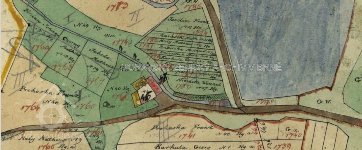 1760-1773 Matěj Procházka (1.1.1760 emfyteuticky zakoupil mlýn od vrchnosti), manž. Alžběta (+1760), 2. manž. Markéta. Od 1776 - 1816 Tomáš Procházka, 1. manž. Mariana roz. Vostalová, 2.manž. Terezie. 1817 - 1829 František Procházka s manž. Františkou roz. Liškovou z Nové Říše.