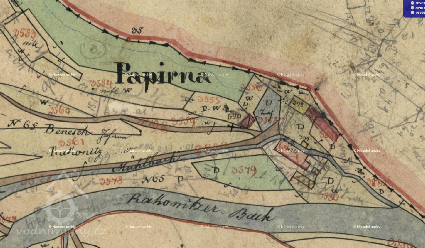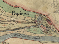 1750 k Papírně náleží 25 korců dědin, platí se dávka 150 zlatých rýnských ročně