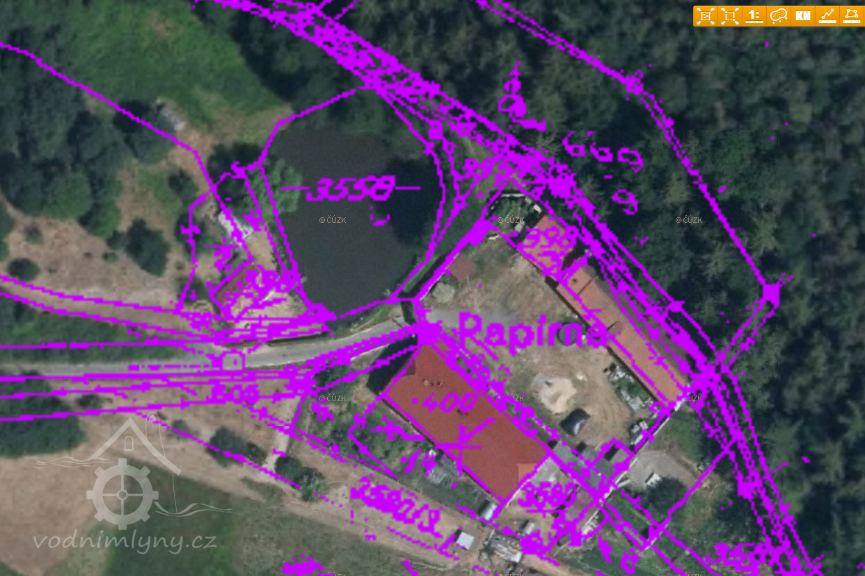 Popis1930: 1 kolo na svrchní vodu, hltnost 0,348 m/s. spád 2,7 m, výkon 8,25 HP