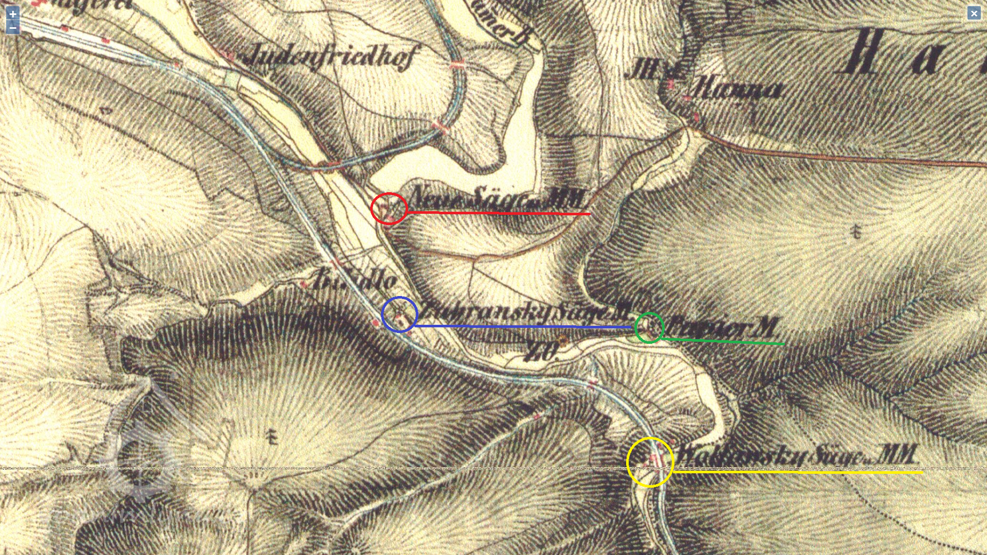 1539 Dania opět vrací mlýn Václavu Šejdíři, u mlýna uvedena pila