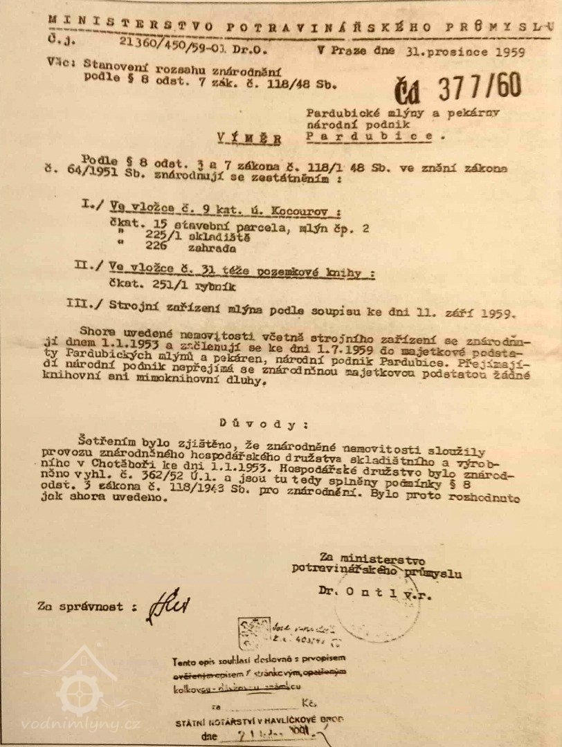 K roku 1937 jsou doloženy dvě válcové stolice a jedno složení s francouzskými kameny.