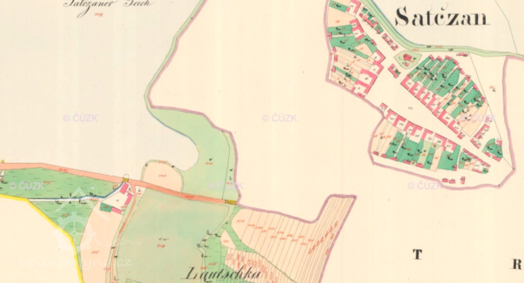 Mezi Žatčanským a Měnínským rybníkem stával již před několika staletími mlýn zvaný Na hrázi. O tom, že mlýn byl součástí nejstarší zástavby Žatčan, svědčí, že měl číslo popisné 28. Mlýn byl od Žatčanského rybníka oddělen hrází (proto se mu říkalo Na Hrázi), pod níž se přiváděla voda na mlýnské kolo. Díky rybníku bylo v létě v náhonu dost vody a v zimě náhon nezamrzal. Když byl Žatčanský rybník v roce 1834 vypuštěn, přestal mlýn fungovat. Posledním mlynářem byl Pavel Vrána. Ten nechal v roce 1834 naproti mlýna postavit děkovný kříž (po Floriánově kříži u kostela druhý nejstarší v obci).