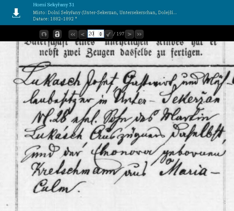 Přepis z pramenů: inventář, nájemní či kupní smlouva, výpisy z matrik aj.