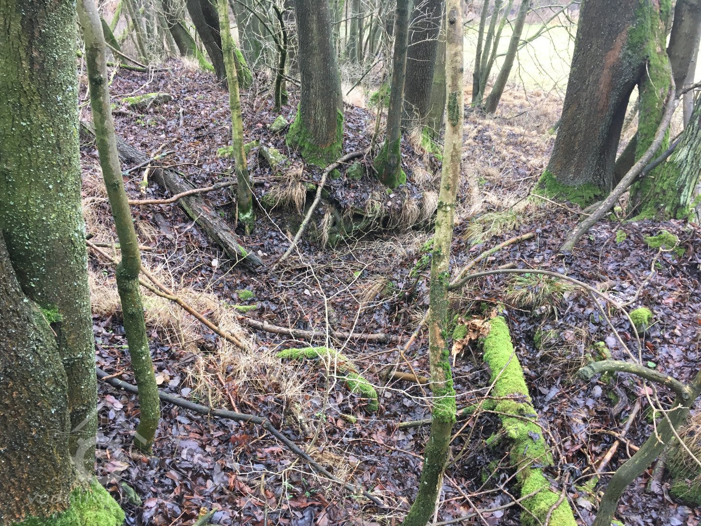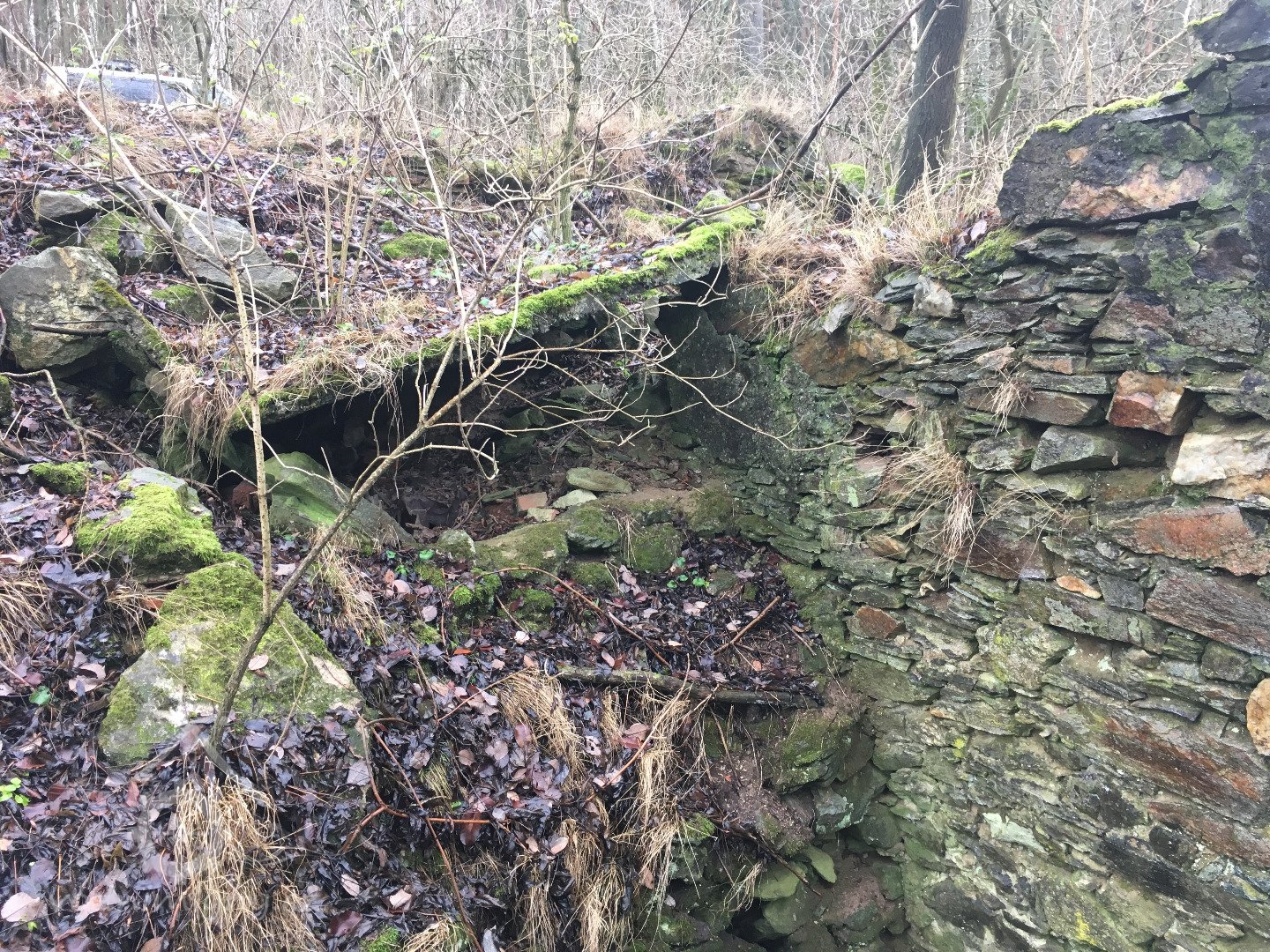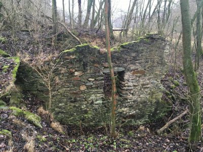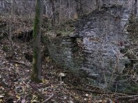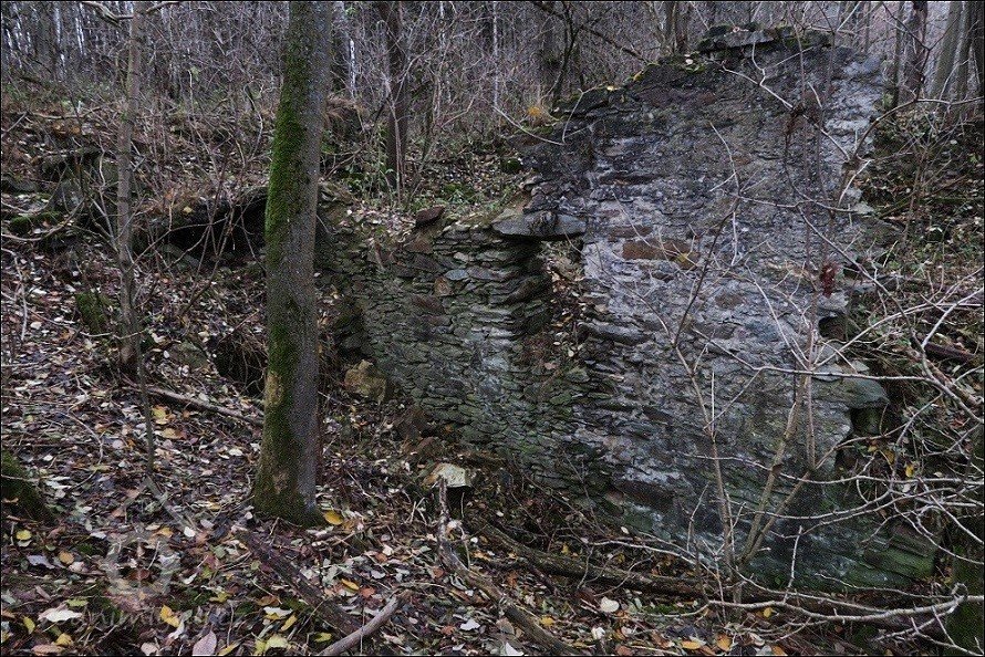 pouze zbytek jedné kamenné zdi s lednicí, náznak zasypaného náhonu, poslední část betonových vantrok a několik dalších drobných stop v náletovém lesíku