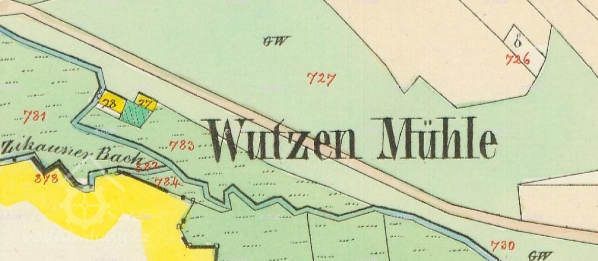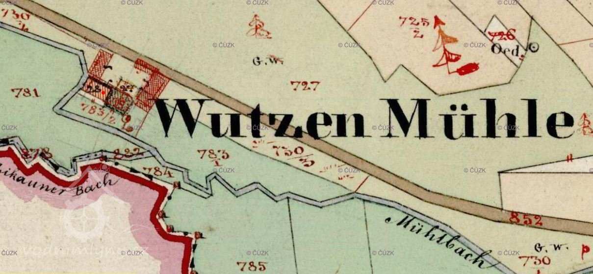 III. vojenské mapování - Františko-josefské (1877-1880) uvádí mlýn pod jménem Wutzete Mühle. V r. 1913 stálo v obci 22 domů a kaple a žilo zde 145 obyvatel. Ke vsi patřily 3 mlýny, stál zde hostinec, kovárna, obchod a prodejna kuřiva.