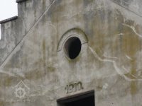 Na jižní straně východního průčelí budovy šalandy nasedá jeden z pilířů původní zděné brány. Pilíř byl vystavěn z cihel a opuky. I přes opadanou omítku je viditelný jemný plastický dekor pásů, kosočtverců, stylizovaných kapek a římsy. Poblíž pilíře jsou dochovány fragmenty dvou stěn původní zděné ohradní zdi (materiál opuka).