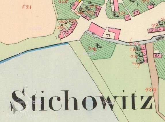 »Stichovský mlynář, který dle své povinnosti opravuje splav v den rybolovu, bručí na smlouvu ze dne 4. XII. 1788, kterou stichovský mlynář tehdy podepsal panství plumlovskému a která z části ještě dnešního dne tíží mlynáře. Pro mlýn č. 19 ve Stichovicích s olejnou a % měřice zahrady byly stanoveny