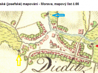 Na severním okraji obce, na rohu ulic Palackého a Morávkova, cca 600 m severozápadně od kostela.