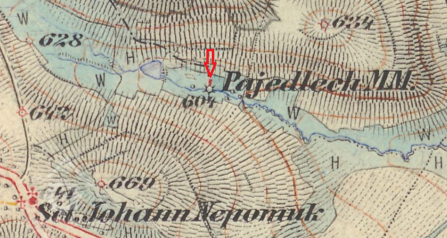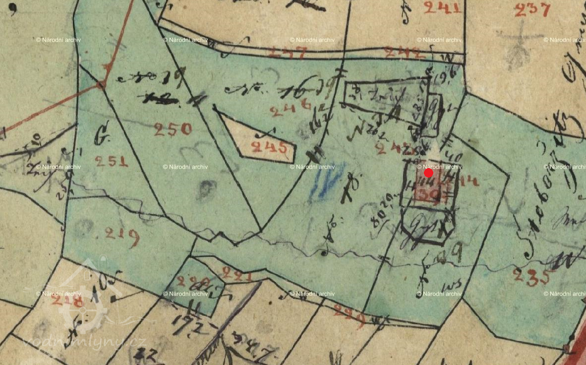 Dnes neexistující mlýn dohledán na mapách III. vojenského mapování, na císařském otisku zobrazen není, ale na mapě pozemkového katastru zobrazen je.