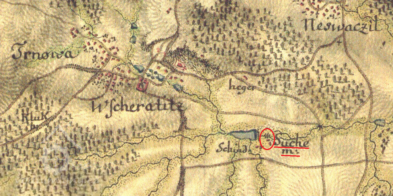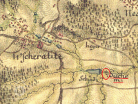 V sousedství mlýna zakreslena šindelka
