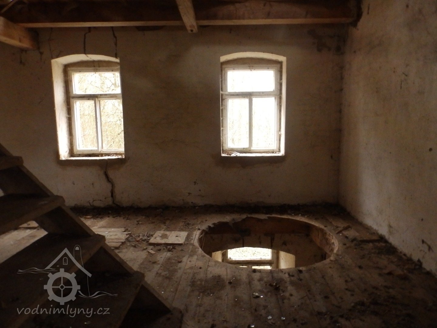 II. patro mlýnice - kruhový otvor v podlaze, 2019, © doxa