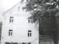Budova mlýna z r. 1911 - štít, nedatováno, © autor neznámý, (Prvky na obrázku: okno, epigrafické památky (nápisy, datování aj.), plastická omítková výzdoba fasád a štítů, zdobený zděný štít)
