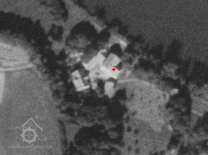 Ortofotomapa-letecký snímek, výřez, 50.léta 20.stol., © geoportal.gepro.cz