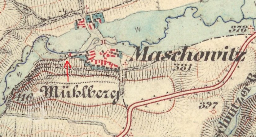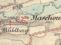 Mlýn je zobrazen na I. vojenském mapování – josefském z let 1764-1768 a 1780-1783. Skica a otisk stabilního katastru 1838 – náhon, jez, odtokový kanál, nespalná budova s jedním kolem, další 2 nespalné budovy, za mlýnem malý rybníček, majitelem je Wolfgang Hartl.