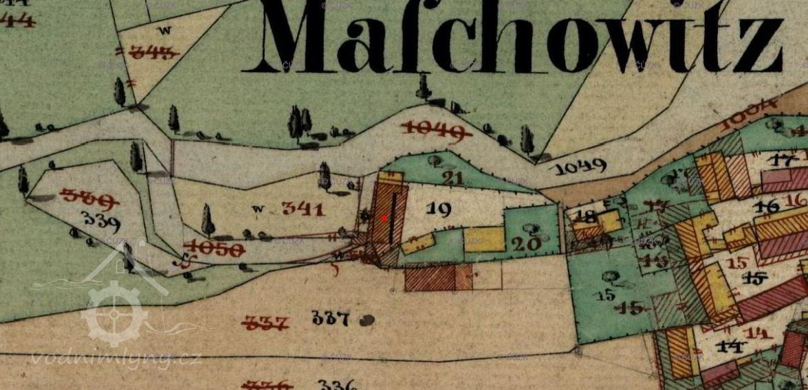 Jediné dochované sčítání obyvatel z roku 1921 – Johann Mahal *1884 Mašovice s rodinou a personálem, k mlýnu patří i hospodářství, majitelé německé národnosti. Seznam vodních děl republiky Československé v roce 1930- Čerchovka – Mašovice 16 – Jan Machal – mlýn – 1 turbina Francis – 0,850-2,35-20.