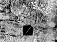zříceniny hospodářské budovy s betonovou jímkou na močůvku, ve stěně klenutý orvor po psí boudě