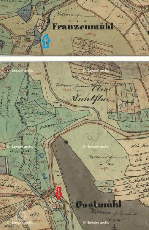 Mlýn dohledán na I. vojenském mapování.