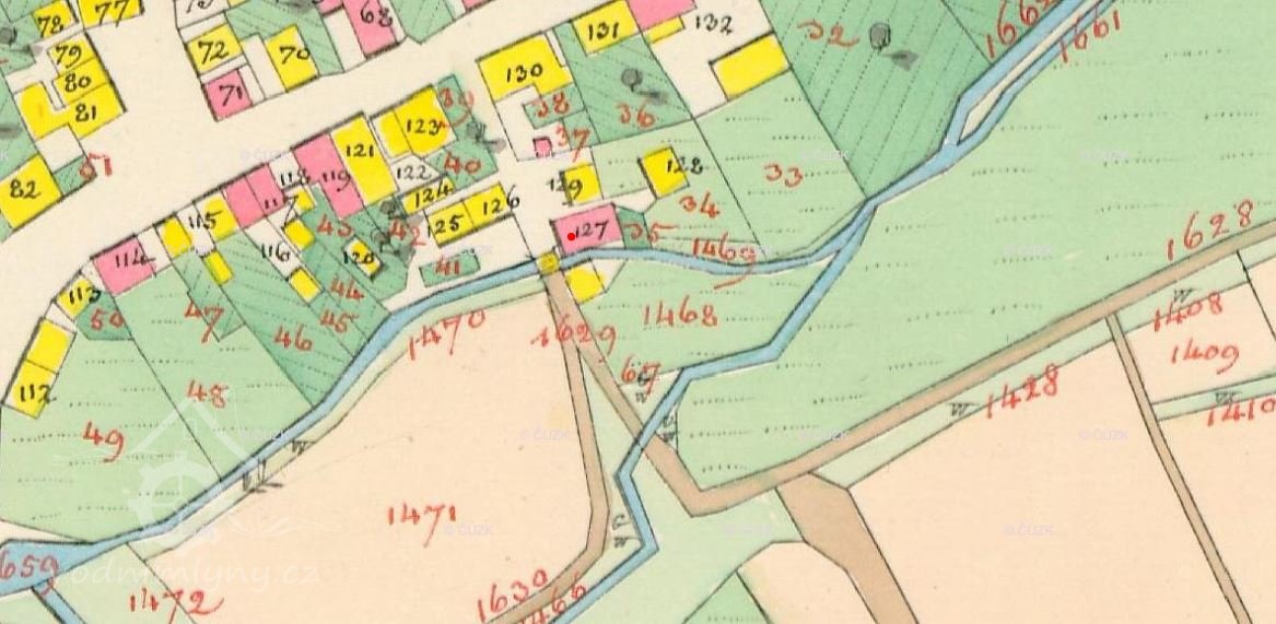 Založen roku 1736. Na skice a otisku stabilního katastru v roce 1838 stojí na parcela 127, v držení Wiederspergů. Na II. vojenském mapování – Františkově z let 1836 - 1852 je zakreslen.