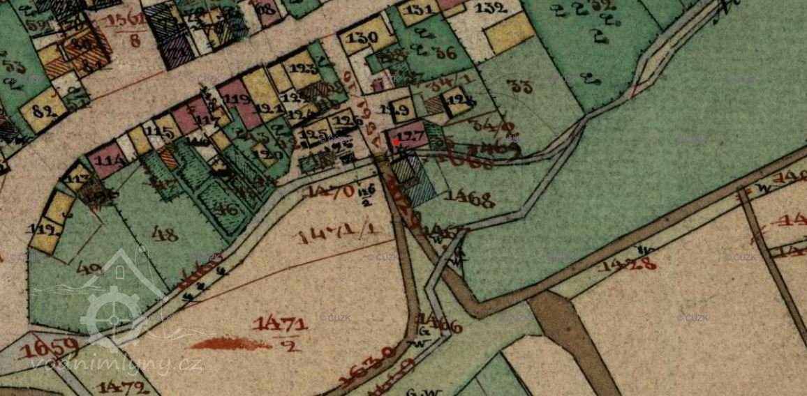 náhon-stavidlo-vantroky-lednice-odtokový kanál. Dnes zaniklé.